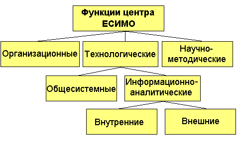 Центр ЕСИМО выполняет свои задачи с помощью набора функций. Их можно классифицировать на организационные, научно-методические и технологические.