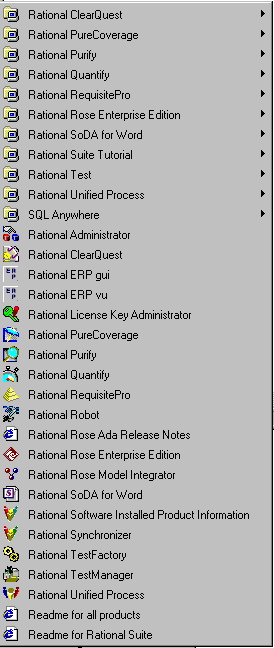 О богатстве возможностей Rational Rose можно судить хотя бы по стартовому меню версии Enterprise Edition: